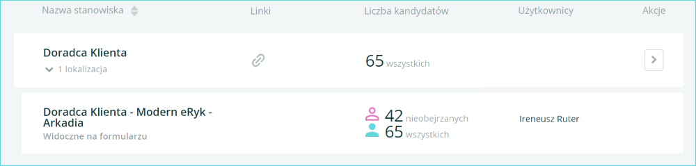W naszym przypadku kierownik sklepu w C.H. Arkadia po zalogowaniu się do systemu zobaczy jedynie aplikacje rekrutacyjne, których kandydaci chcą pracować w tym konkretnym centrum handlowym. Manager nie będzie mieć dostępu ani do aplikacji kandydatów, którzy zaaplikowali na inne lokalizacje, ani tym bardziej do innych rekrutacji (chyba, że wcześniej mu je udostępniono). Rozwiązuje to problem wzajemnego „podbierania” sobie kandydatów przez kierowników, bo staje się to po prostu niemożliwe :). Kierownicy nie wiedzą, ile i jakie aplikacje napłynęły do innych lokalizacji.