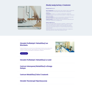 Jako główne korzyści stworzenia firmowej Strony Kariery PRO Pani Agnieszka wymienia zwiększenie efektywności rekrutacji i budowanie marki pracodawcy. Creator działa na rynku już 45 lat, z czego blisko 30 w branży medycznej. W przekazie do potencjalnego kandydata uwypuklają stabilność firmy i duże doświadczenie w branży rehabilitacyjnej. Na stronie kariery pokazują kulturę organizacyjną, opinie pracowników oraz zaangażowanie we wszystkie podejmowane działania. To zachęca do aplikowania osoby, które podzielają wartości firmy. Dzięki dostępnym informacjom i ofertom pracy, przyszli pracownicy mogą dowiedzieć się wiele o organizacji, jej potencjale i dostępnych stanowiskach.