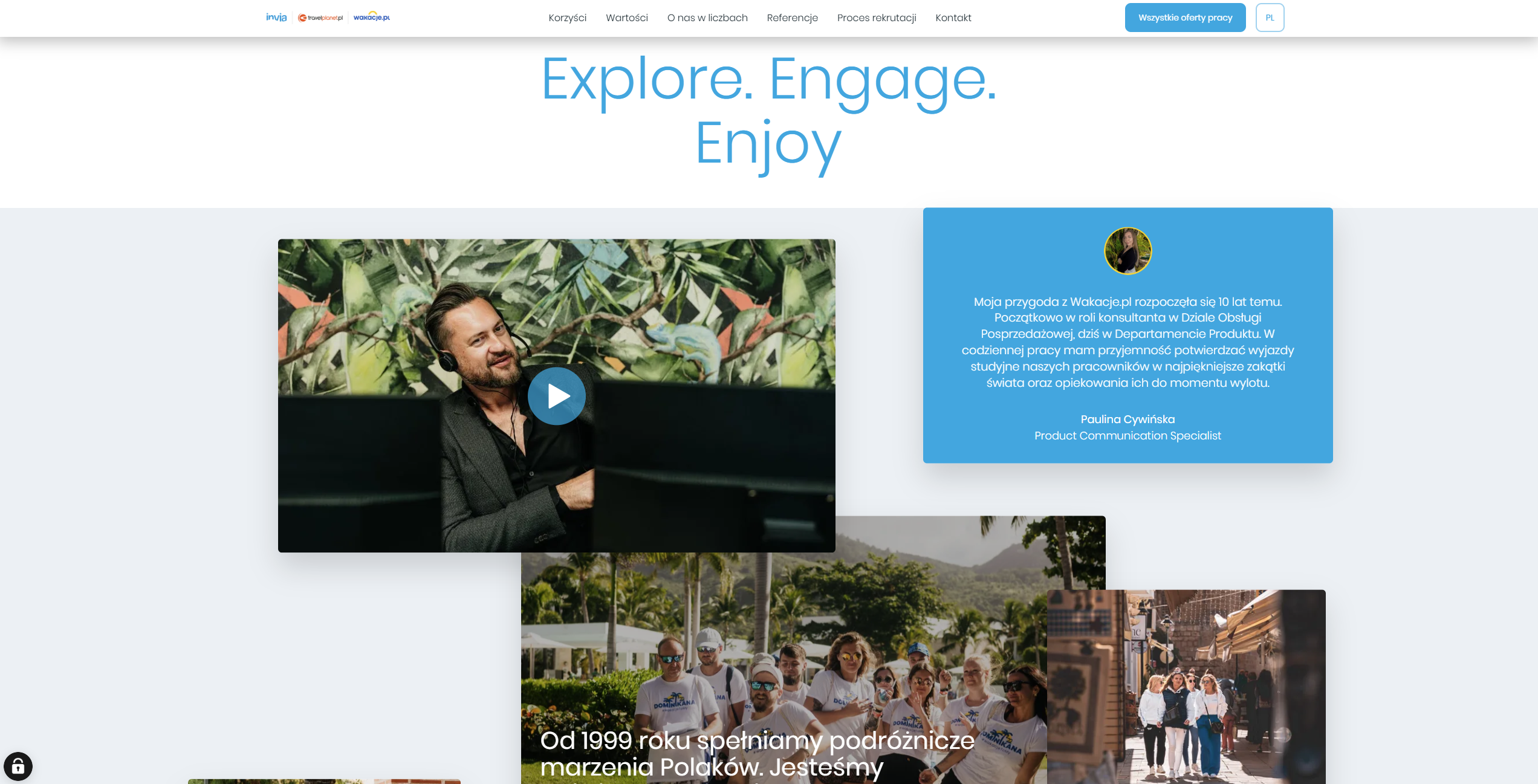 Wakacje.pl to jeden z największych w Polsce ekspertów w planowaniu urlopów i sprzedaży wycieczek. Firma działa wielokanałowo: poprzez sieć salonów, call center, stronę internetową oraz nagradzaną aplikację mobilną – obsługując rocznie ponad milion klientów i współpracując z ponad 100 organizatorami turystyki.